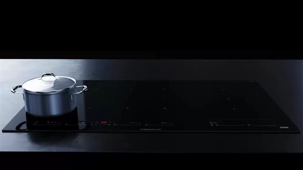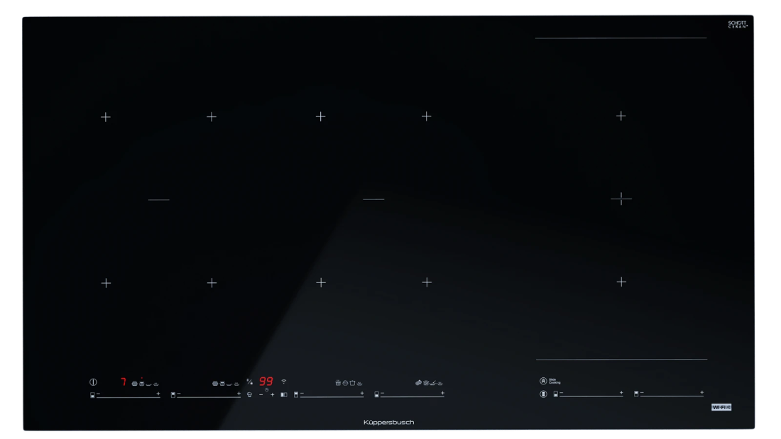 Индукционная варочная панель Kuppersbusch KI 9880.1 SR. Особенностью данной модели является наличие шести конфорок и функции FlexZone.