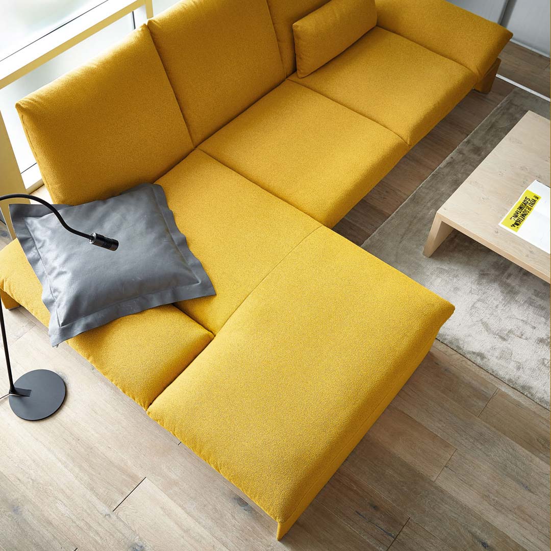 Пошаговая регулировка подлокотника для любой ситуации, будь то чтение газеты или просто отдых. Инновационная технология фурнитуры позволяет плавно регулировать спинку вверх. Диван превращается в ожидаемую высокую спинку, а глубина сиденья увеличивается. Несущий каркас поставляется в выбранном покрытии. Опционально рама может быть изготовлена ​​из массива дерева.